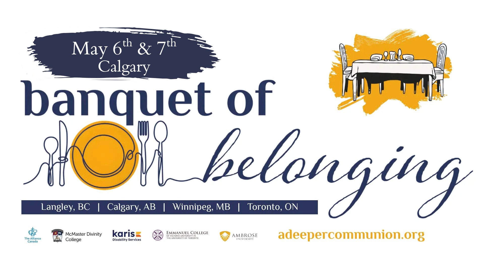 Banquet of Belonging is a conference exploring how community and discipleship are reshaped when disabled and non-disabled people learn together across difference. Through theology, lived experience, and shared practices, participants are invited into a vision of belonging formed at one table—where gifts are celebrated and everyone matters. [Calgary live gathering is at First Alliance Church on the 2nd floor in the Harvest Room.]