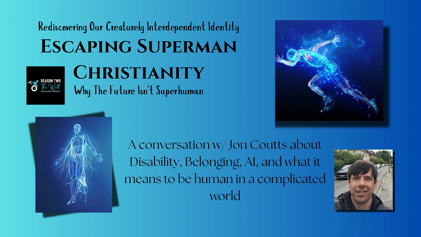 In this episode of The Well Dwellers Podcast, Erik Freiburger is joined by theologian, pastor, and ethicist Jon Coutts for a wide-ranging and deeply honest conversation titled Escaping Superman Christianity: Rediscovering Our Creaturely Interdependent Identity & Why the Future Isn’t Superhuman.